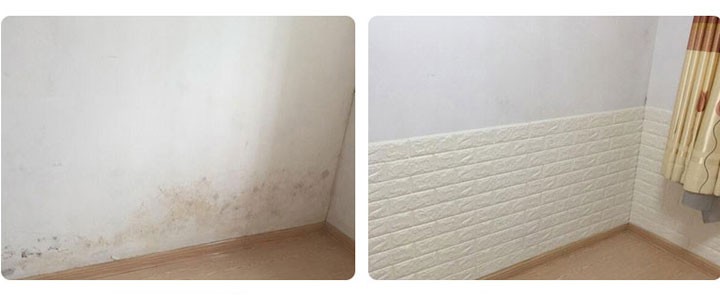 第二步:确认墙面是否干燥。由于材料正面防水,但是背面带胶不防水,贴之前一定要保持墙面干燥